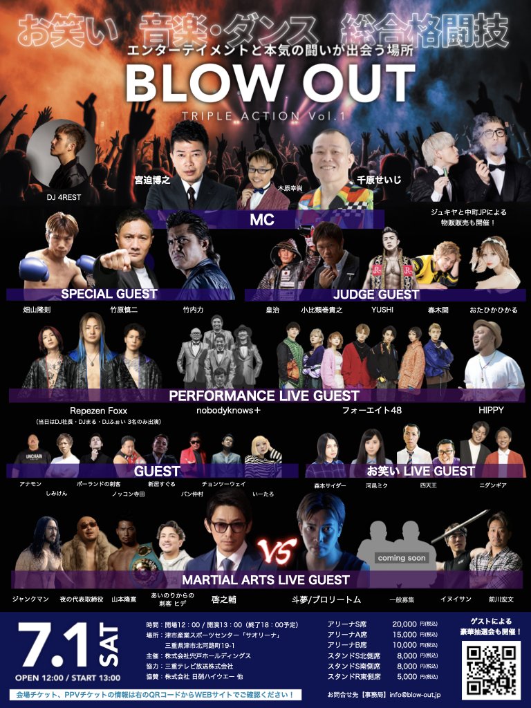 BLOW OUTはブロリートム(宍戸斗夢)さんの出身地でもある三重県で開催されており、三重県を盛り上げるという"町おこし・地域おこし"の狙いもあった。