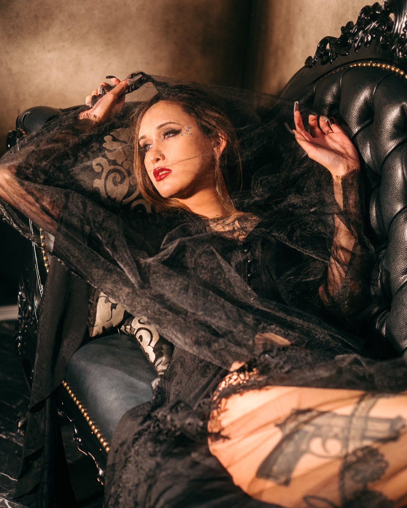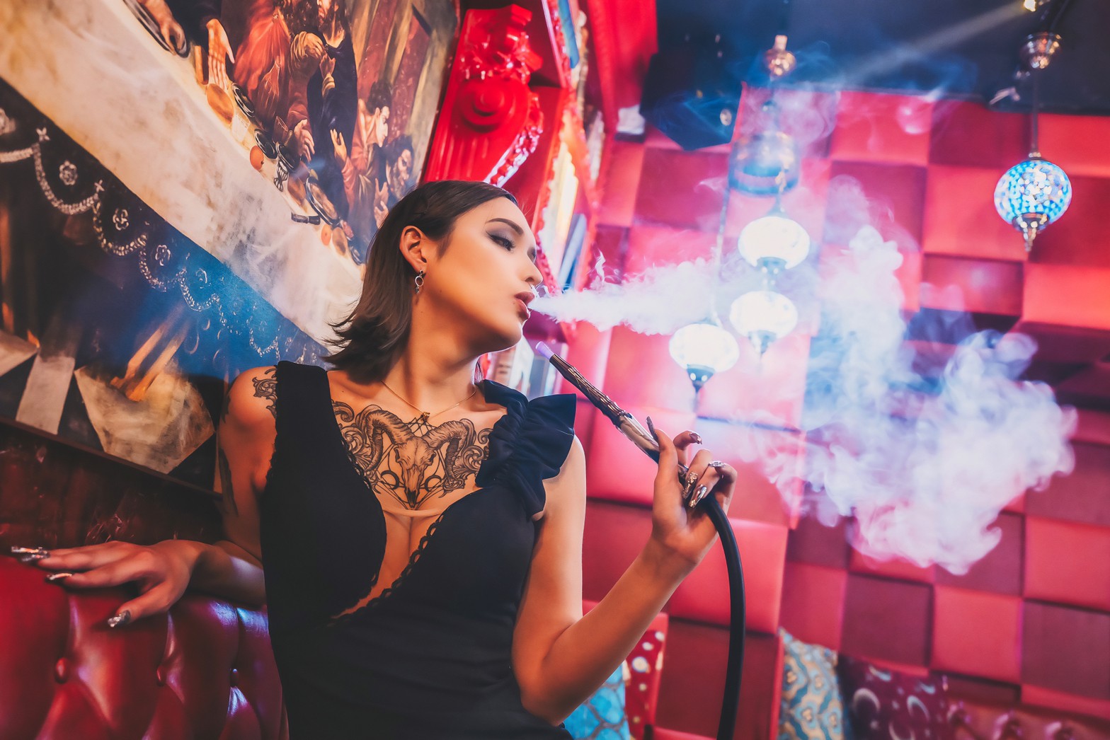 シーシャバーのモデルを務める悠莉(ゆうり)さん。気だるい表情でミステリアス&妖艶な雰囲気で唯一無二の存在感。