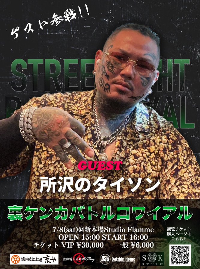 トコタイこと所沢のタイソンさんは"喧嘩3000戦無敗"を誇るストリートの猛者ですが、MMA(総合格闘技)の現役王者ともストリートファイトし勝利していると武勇伝を豪語。