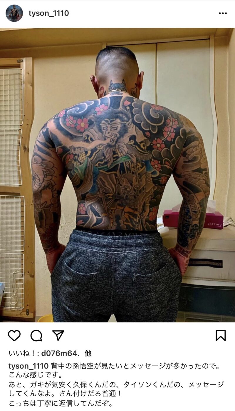 所沢のタイソンはこれまで何度もまっとうな仕事に就いて人生のやり直しを図り、様々な会社の採用に応募してきました。しかし持ち前の喧嘩屋気質と全身に入った刺青が原因となり、ことごとく採用不可になってきたとのこと。