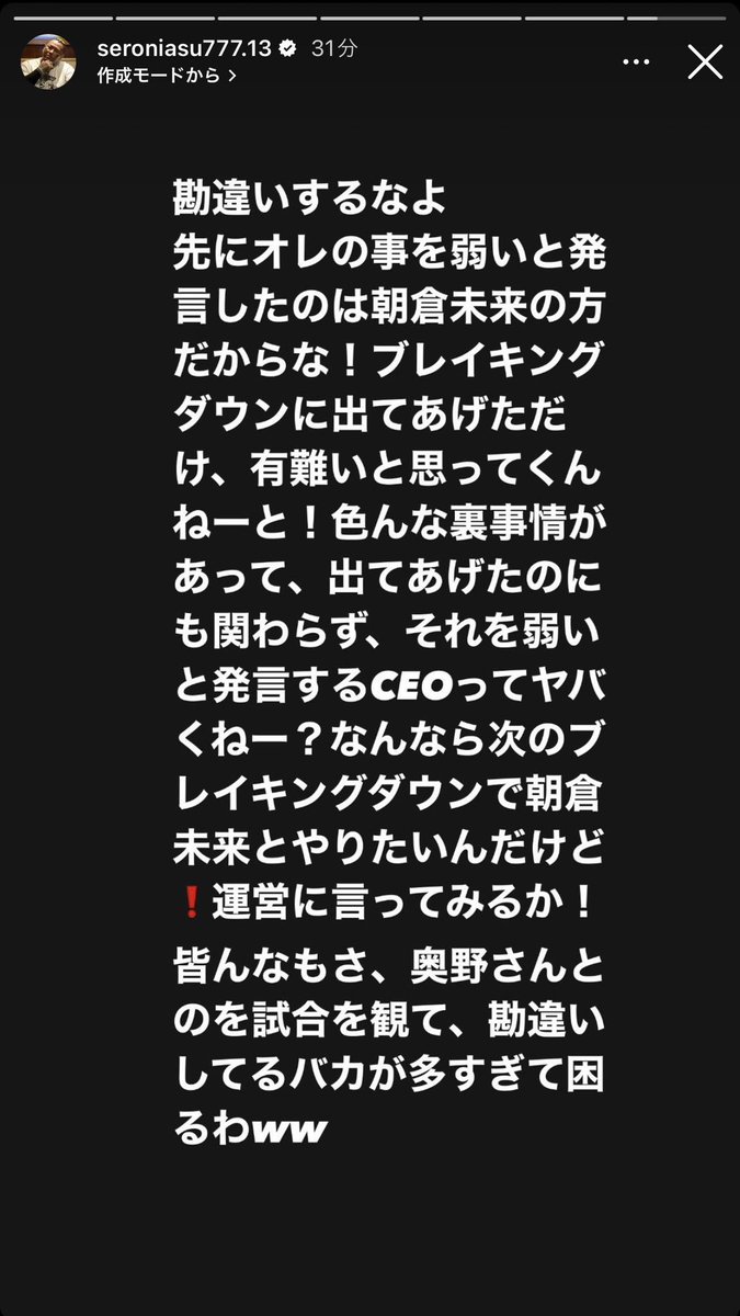 - 「やらせてくださいよ!朝倉未来、逃げませんよね?」
